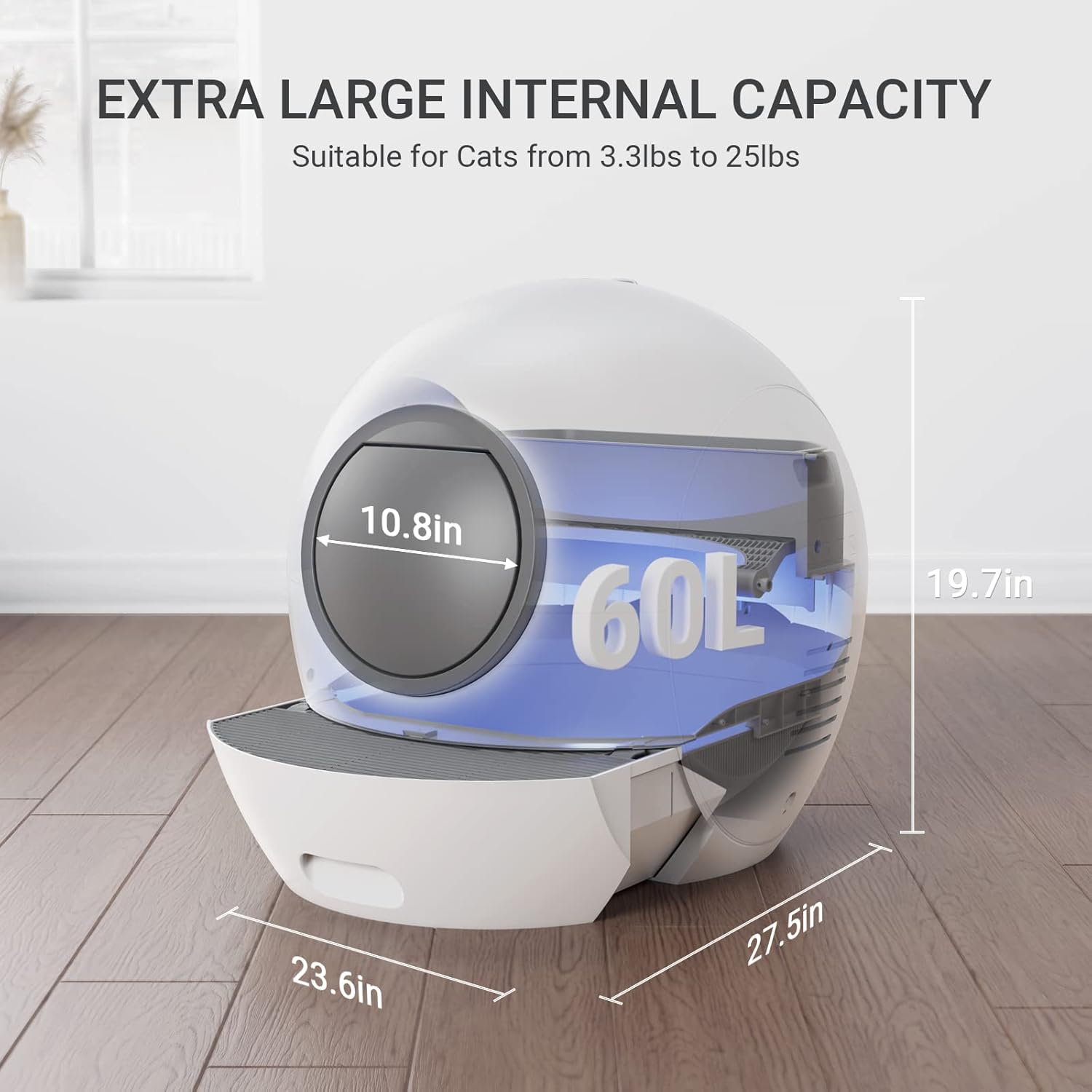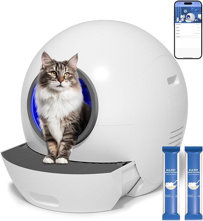 Self Cleaning Cat Litter Tray Automatic Cats Litter Box with Door 60L Smart Robot Litter Tray with APP Safety Protection, Smart Closed Cats Toilet with 2x Cat Litters) is backordered and will ship as soon as it is back in stock.