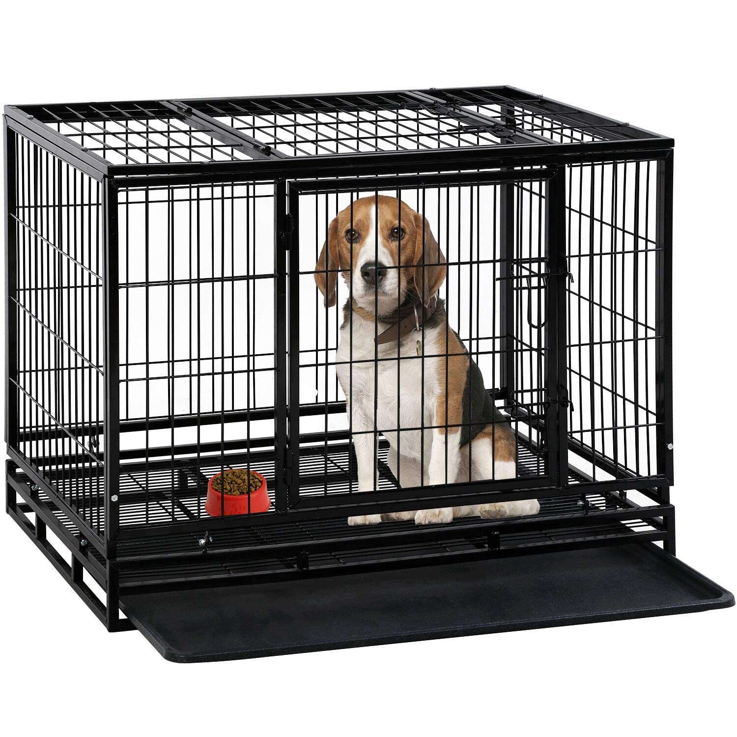 Dog Crate Cage For Large Dogs Heavy Duty 36 Inches Dog Kennel Pet Playpen For Training Indoor Outdoor With Plastic Tray Double Doors & Locks Design