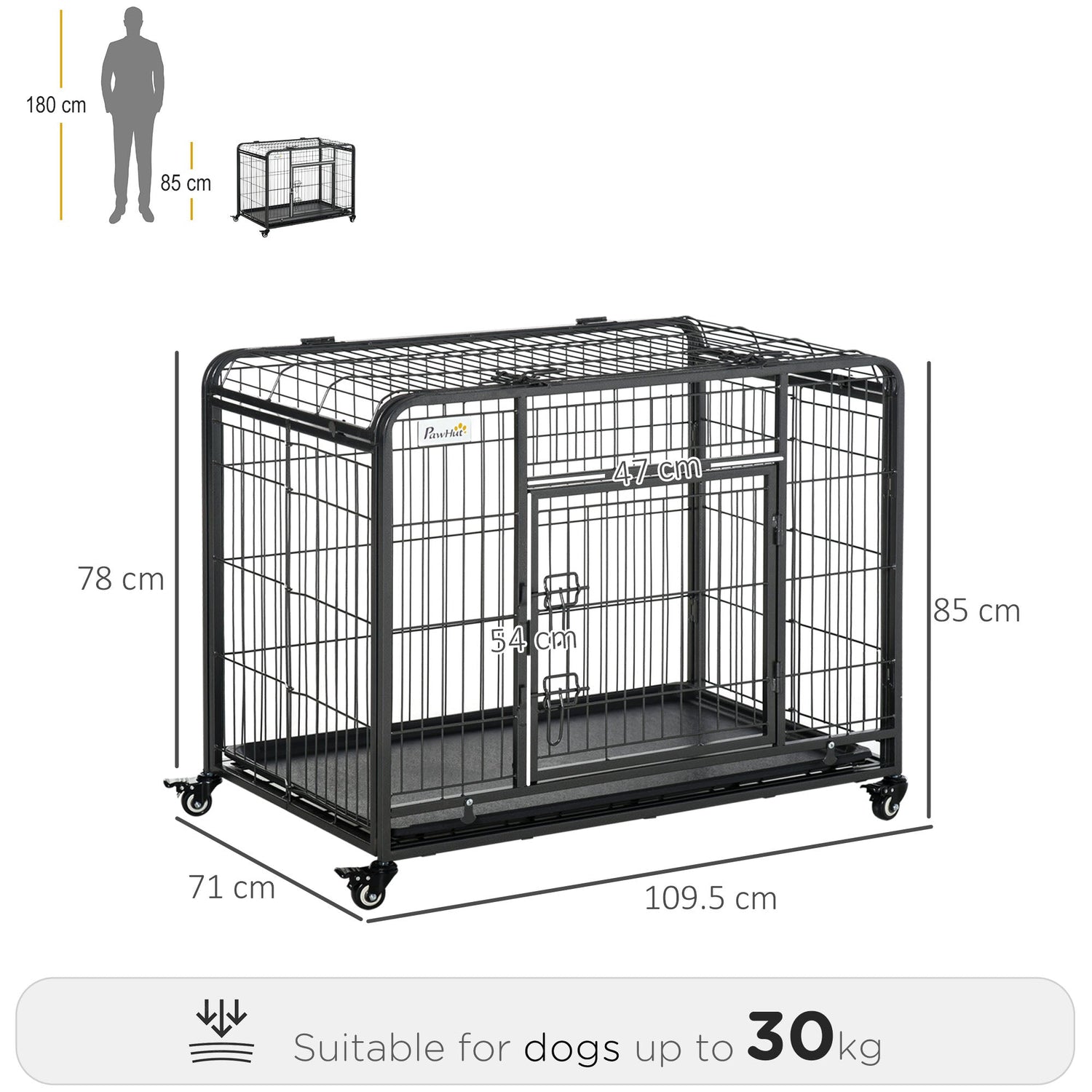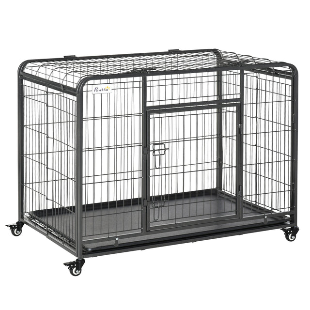 PawHut Metal Dog Cage Kennel Locking Door & Wheels Removable Tray Openable Top For Large Pets 109.5 x 71 x 78 cm