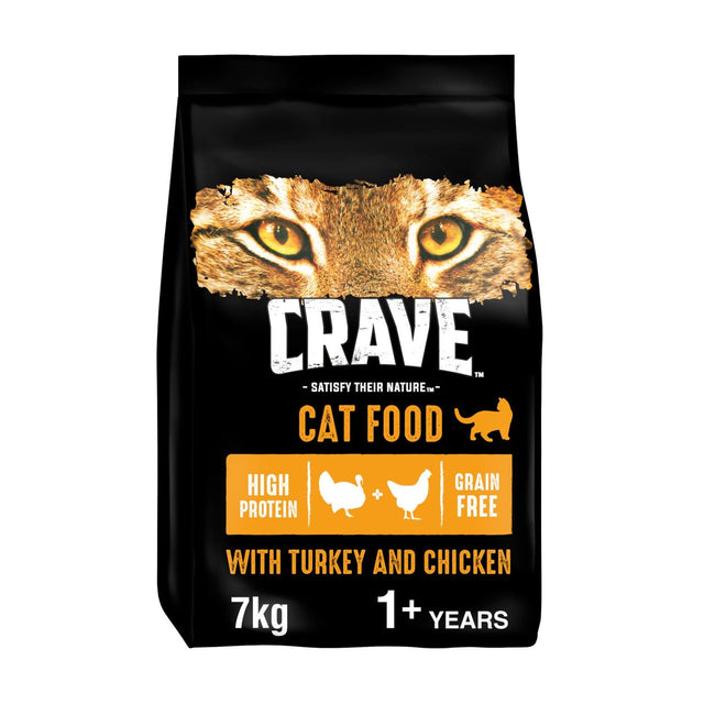 CRAVE dry cat food with Chicken & Turkey in 7kg is inspired by a cat's natural diet. This high-protein and grain-free cat food recipe is made with 100% Natural Chicken and is designed to help support strong and healthy muscles for your cat. CRAVE Cat Dry cat food is made with high-quality animal protein for the flavor cat’s love. CRAVE Cat Dry cat food contains no artificial colors, flavors or preservatives. It is also made without maize, wheat, soya or dairy.