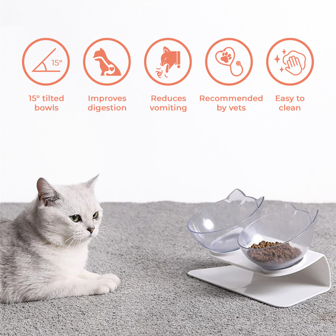Did you know regular food bowls are actually bad for your cat's posture and digestion? An elevated bowl solves both of these issues. The 15° tilt improves your cat's posture and reduces the strain on their spine, hips, shoulders and most importantly it reduces the strain on their Esophagus (food pipe), which makes swallowing food so much easier!