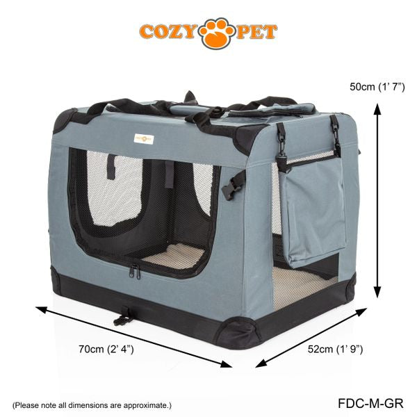 Fabric Dog Crate 70cm Grey by Cozy Pet Puppy Carrier Cat Travel Cage Rabbit Model: FDC-M-GR
